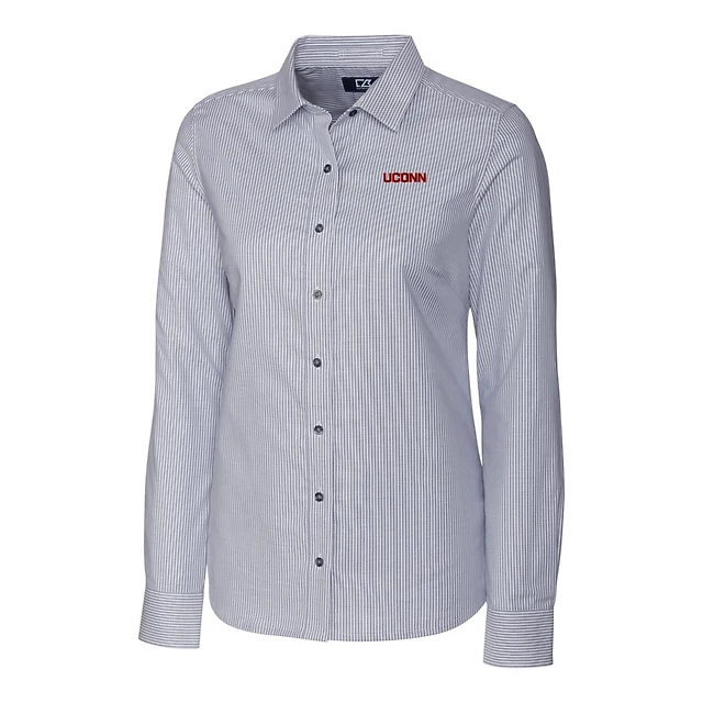 Chemise à manches longues extensible rayures en oxford pour femme Cutter & Buck, anthracite, avec inscription UConn Huskies