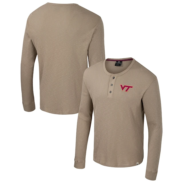 Chemise à manches longues Great Outdoors Henley pour homme, couleur tan Colosseum, Virginia Tech Hokies