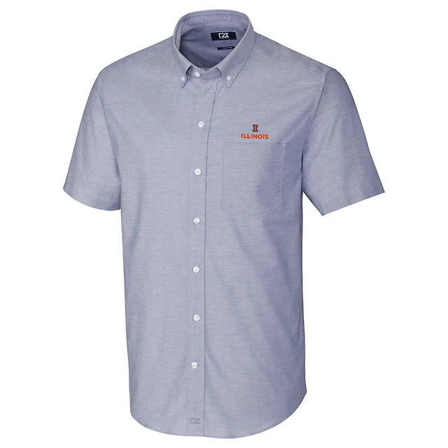 Chemise boutonnée à manches courtes bleu clair Illinois Fighting Illini en tissu Oxford extensible pour homme Cutter & Buck
