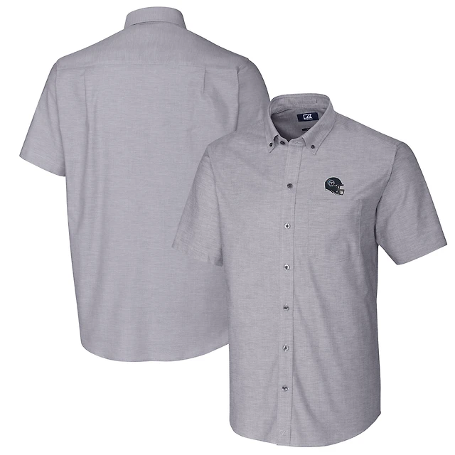 Chemise boutonnée à manches courtes en tissu Oxford extensible pour homme, couleur anthracite, motif casque des Titans du Tennessee, Cutter & Buck