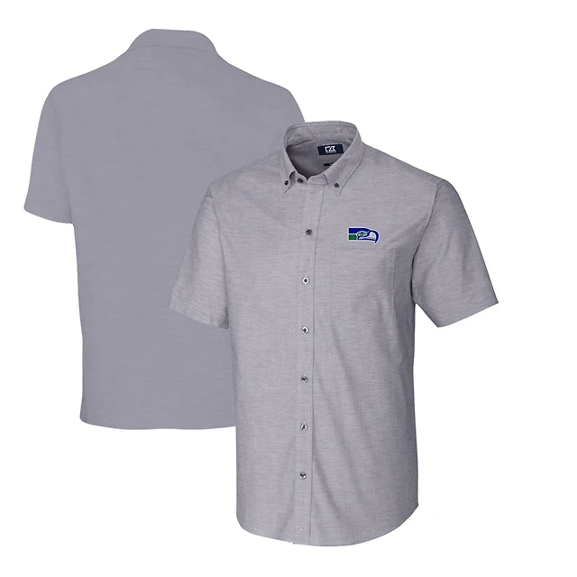 Chemise boutonnée à manches courtes et col boutonné pour homme, couleur anthracite, avec logo rétro des Seattle Seahawks, coupe Cutter & Buck, grande taille