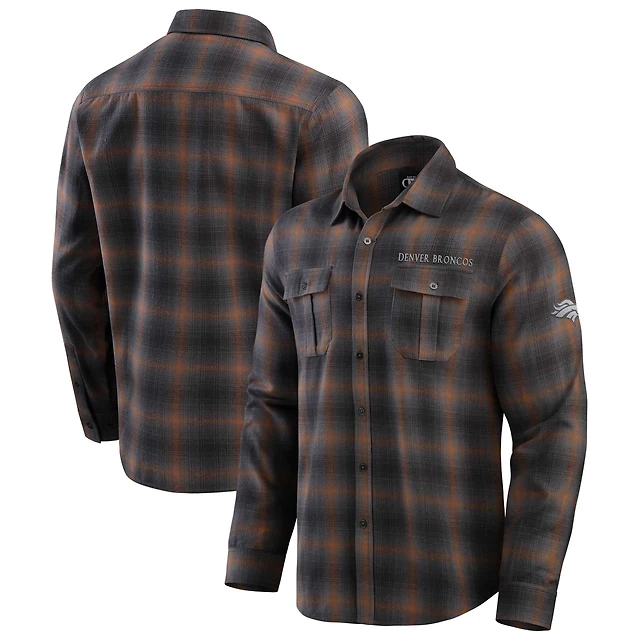 Chemise boutonnée à manches longues classique en flanelle pour homme de la collection Darius Rucker Fanatics, couleur tan, Denver Broncos