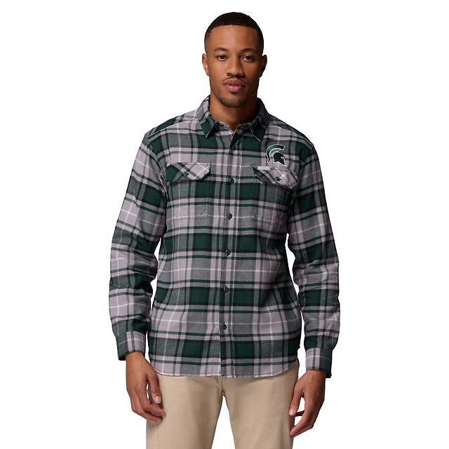 Chemise boutonnée à manches longues en flanelle Omni-Wick pour homme, modèle vert Columbia Michigan State Spartans