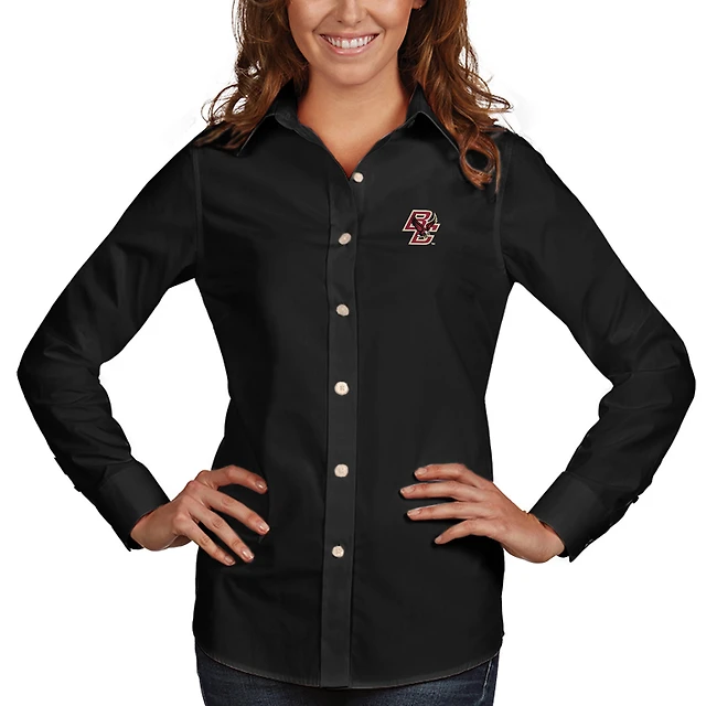 Chemise boutonnée à manches longues en tissu noir Antigua pour femme, motif Dynastie des Eagles de Boston College