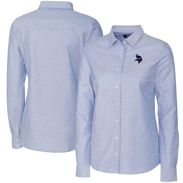 Chemise boutonnée à manches longues en tissu Oxford extensible bleu clair pour femme Cutter & Buck des Vikings du Minnesota