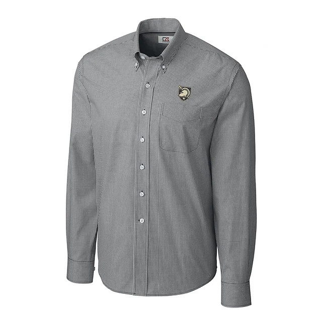 Chemise boutonnée à manches longues et carreaux vichy pour homme, style Army Black Knights, Cutter & Buck, anthracite