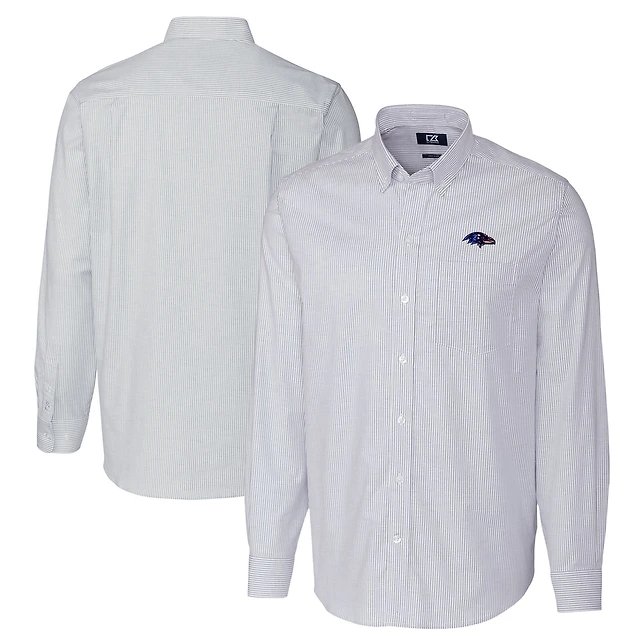 Chemise boutonnée à manches longues et rayures Oxford extensible bleu clair pour homme, modèle Cutter & Buck des Baltimore Ravens, grande taille