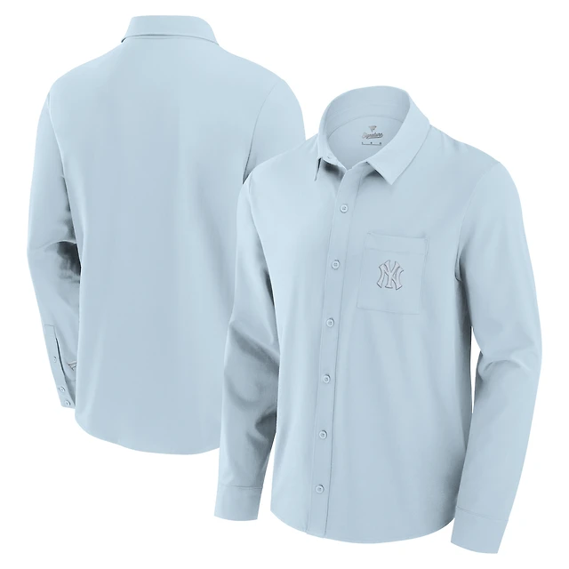 Chemise boutonnée à manches longues Fanatics bleu clair New York Yankees Front Office pour hommes