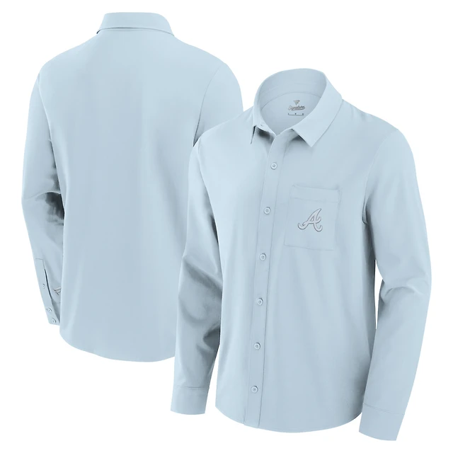 Chemise boutonnée à manches longues Fanatics pour hommes, bleu clair, Atlanta Braves Front Office