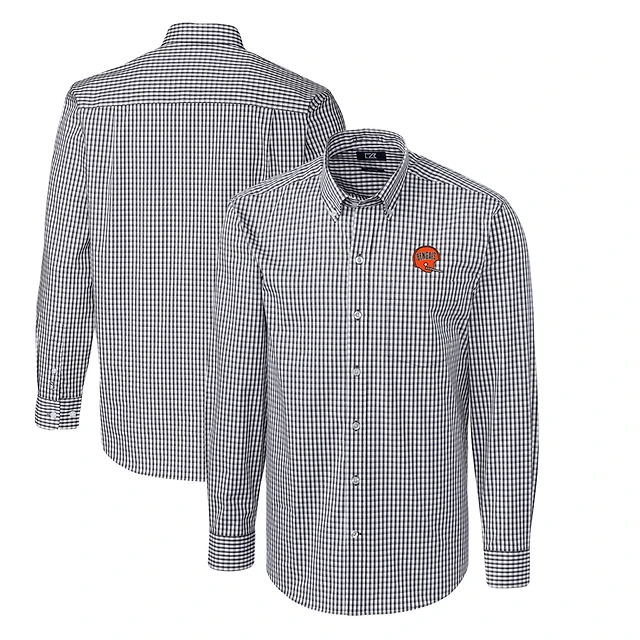 Chemise boutonnée à manches longues pour homme, couleur anthracite, avec logo rétro des Bengals de Cincinnati, facile d'entretien, extensible, vichy, grande taille