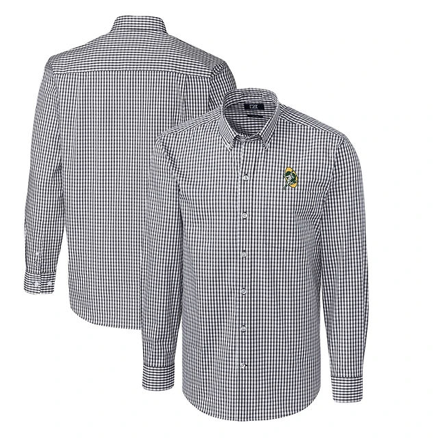 Chemise boutonnée à manches longues pour homme, couleur anthracite, avec logo rétro des Green Bay Packers, facile d'entretien, extensible, vichy, grande taille
