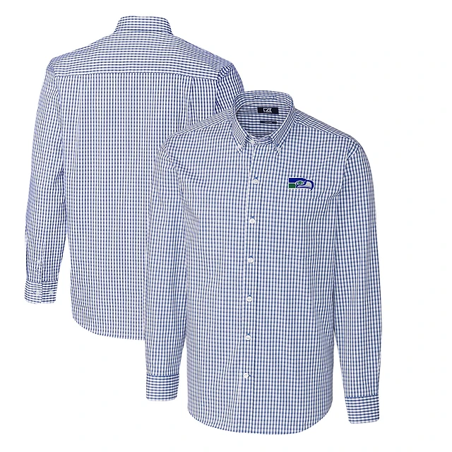 Chemise boutonnée à manches longues pour homme Cutter & Buck Royal Seattle Seahawks Throwback Logo Easy Care Stretch Gingham Big Tall