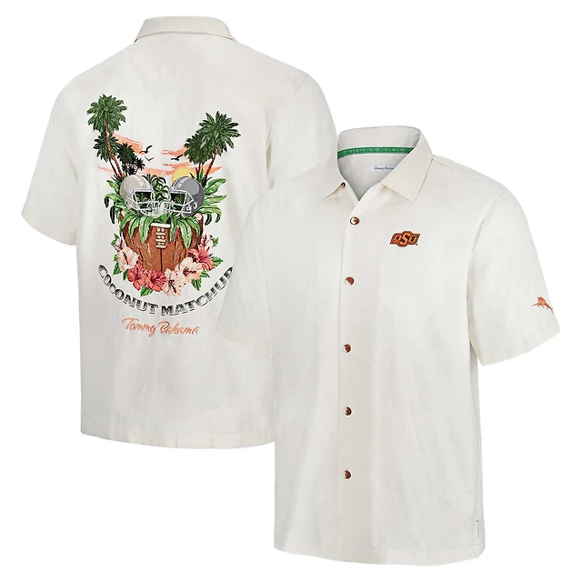 Chemise boutonnée blanche pour homme Tommy Bahama Oklahoma State Cowboys Coconut Matchup Camp