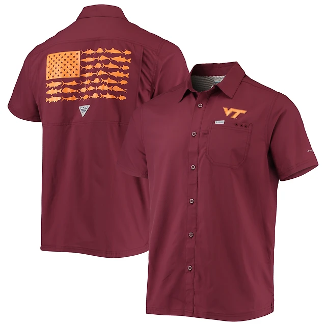 Chemise boutonnée Columbia PFG Virginia Tech Hokies Slack Tide Camp marron pour homme