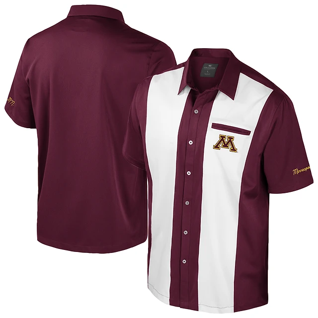 Chemise boutonnée de bowling pour homme, couleur marron Colosseum, Minnesota Golden Gophers Strike