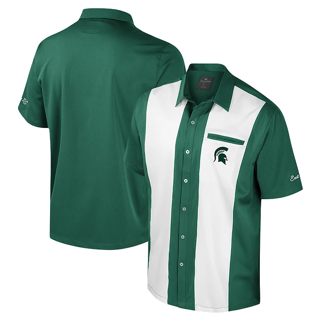 Chemise boutonnée de bowling pour homme, vert Colosseum, Michigan State Spartans Strike