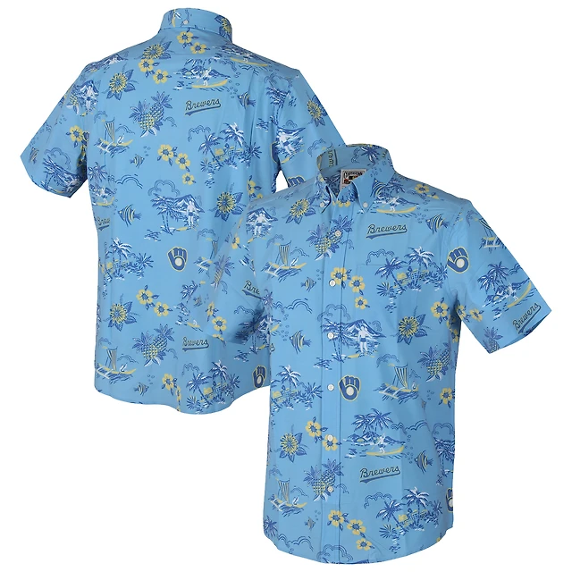 Chemise boutonnée Kekai bleu clair Reyn Spooner pour homme, des Milwaukee Brewers
