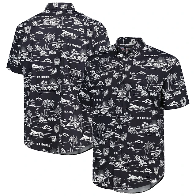 Chemise boutonnée noire à imprimé Kekai pour hommes Reyn Spooner des Las Vegas Raiders Throwback