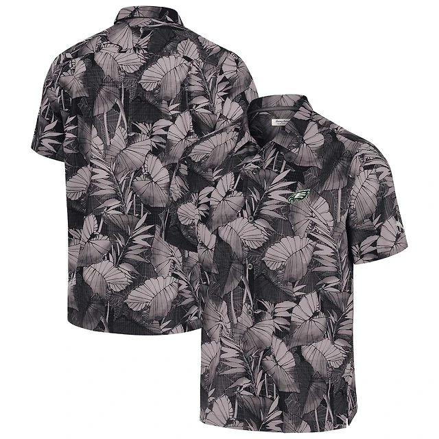 Chemise boutonnée noire pour homme Tommy Bahama Philadelphia Eagles Coast Nuevo Fronds Camp
