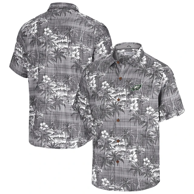 Chemise boutonnée noire pour homme Tommy Bahama Philadelphia Eagles Coconut Point Isla Palmetta Camp
