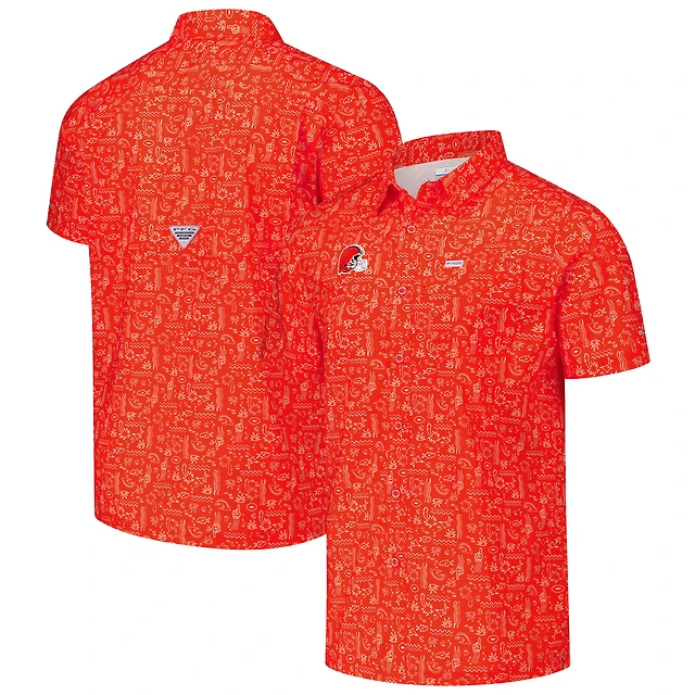 Chemise boutonnée Omni-Wick Super Slack Tide pour homme Columbia PFG Orange Cleveland Browns