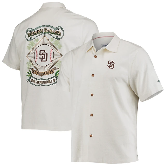 Chemise boutonnée pour homme Tommy Bahama Cream San Diego Padres Baseball Camp