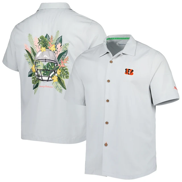 Chemise boutonnée pour homme Tommy Bahama Grey Cincinnati Bengals Coconut Point Frondly Fan Camp IslandZone
