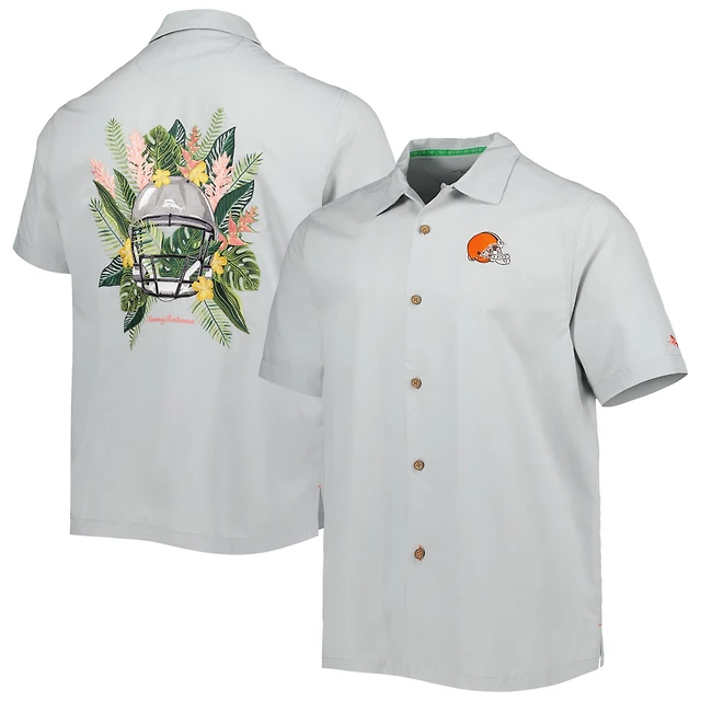Chemise boutonnée pour homme Tommy Bahama Grey Cleveland Browns Coconut Point Frondly Fan Camp IslandZone