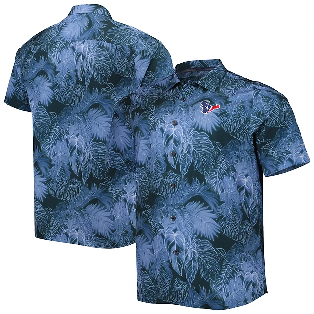 Chemise boutonnée pour homme Tommy Bahama Navy Houston Texans Big & Tall Coast Luminescent Fronds Camp IslandZone