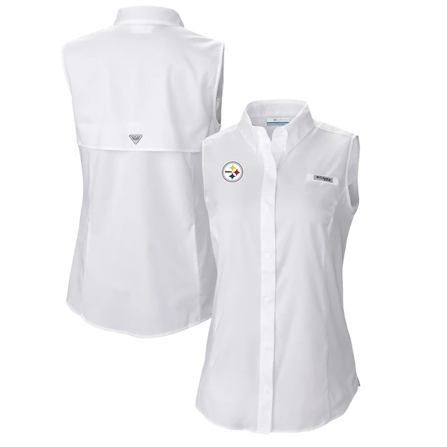 Chemise boutonnée sans manches Columbia blanche PFG Tamiami Omni-Shade pour femme des Pittsburgh Steelers
