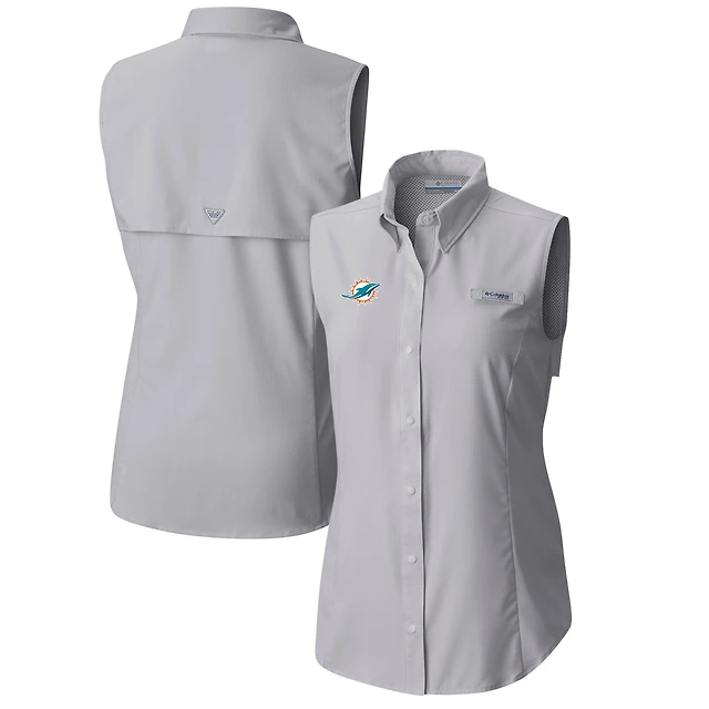 Chemise boutonnée sans manches Columbia grise Miami Dolphins PFG Tamiami Omni-Shade pour femme