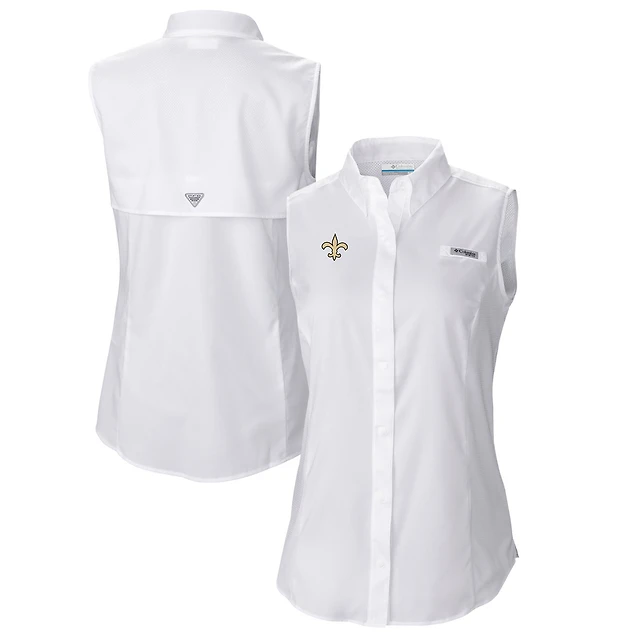 Chemise boutonnée sans manches Columbia New Orleans Saints PFG Tamiami Omni-Shade pour femme, blanche