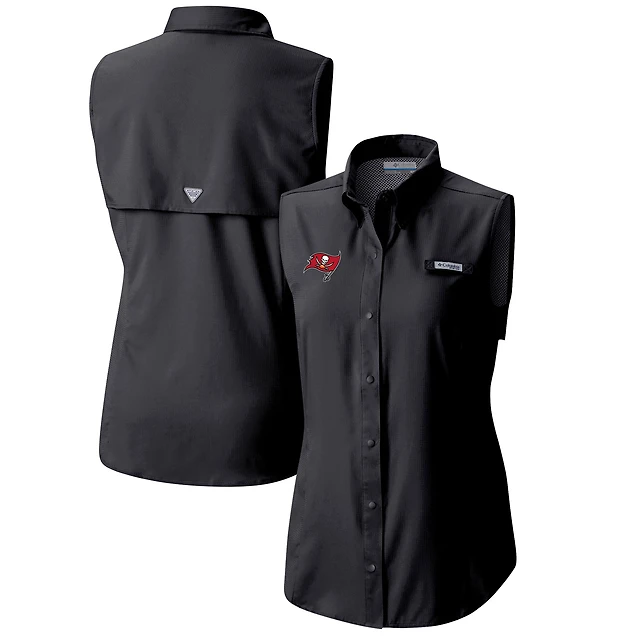 Chemise boutonnée sans manches Columbia noire Tampa Bay Buccaneers PFG Tamiami Omni-Shade pour femme