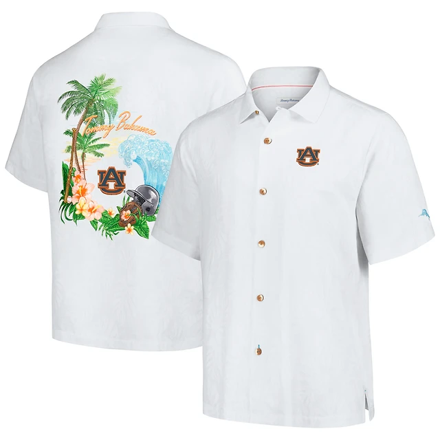 Chemise boutonnée Tommy Bahama blanche Auburn Tigers Castaway Game Camp pour hommes
