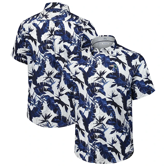 Chemise boutonnée Tommy Bahama bleu marine pour homme New England Patriots Sunnyvale Blooms Camp