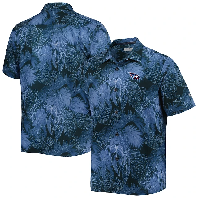 Chemise boutonnée Tommy Bahama Blue Tennessee Titans Coast Camp IslandZone à frondes luminescentes pour homme