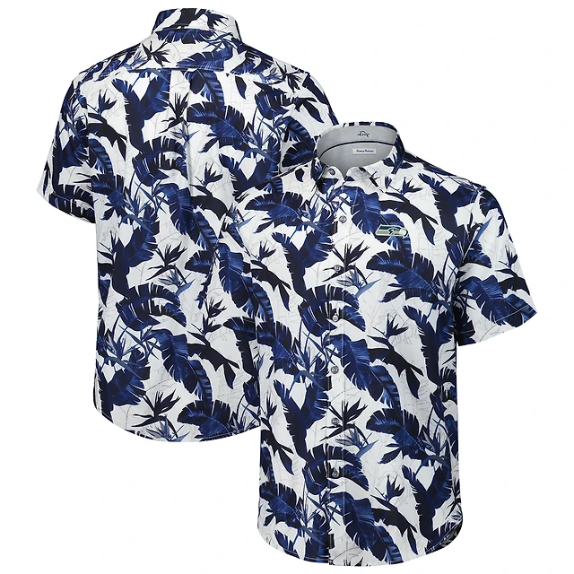 Chemise boutonnée Tommy Bahama College Navy pour homme des Seattle Seahawks Sunnyvale Blooms Camp