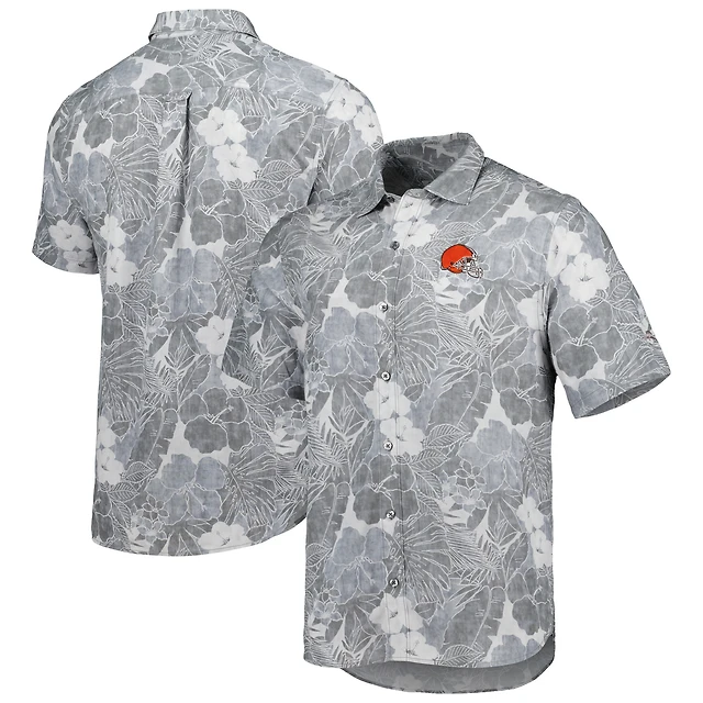 Chemise boutonnée Tommy Bahama grise Cleveland Browns Coconut Point Playa Floral Camp IslandZone pour hommes