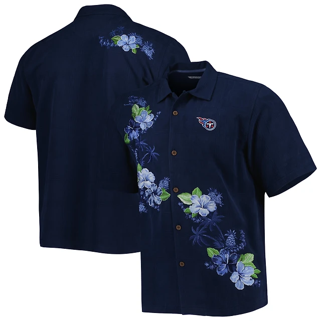 Men's Tommy Bahama Navy Tennessee Titans Sunnyvale Blooms Camp Button-Up Shirt