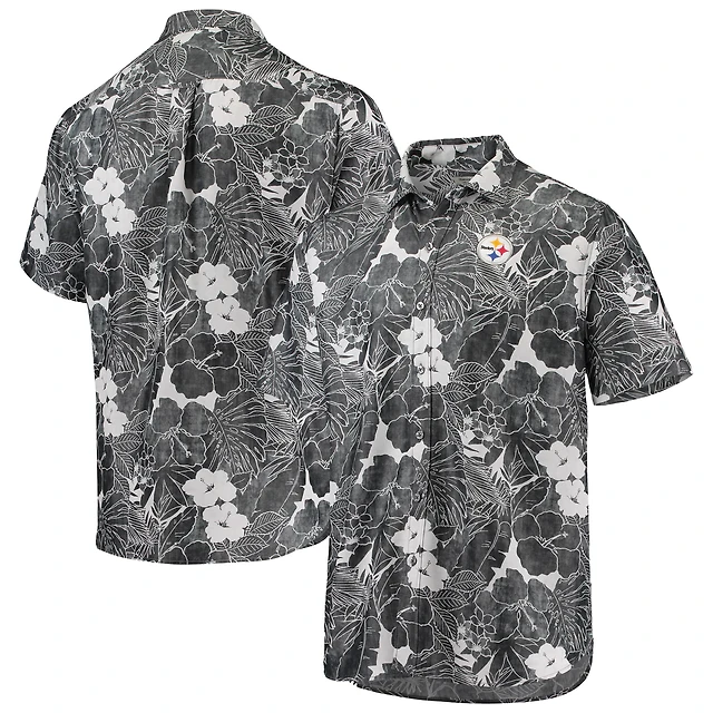Chemise boutonnée Tommy Bahama noire Pittsburgh Steelers Coconut Point Playa Floral IslandZone pour hommes