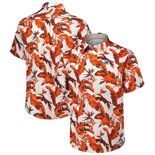 Chemise boutonnée Tommy Bahama orange Miami Dolphins Sunnyvale Blooms Camp pour homme