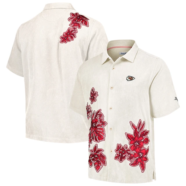Chemise boutonnée Tommy Bahama pour hommes, crème, Kansas City Chiefs Hibiscus Camp