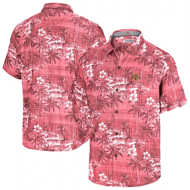 Chemise boutonnée Tommy Bahama rouge pour homme, Iowa State Cyclones, Coconut Point, Palmetta Island, Zone Camp