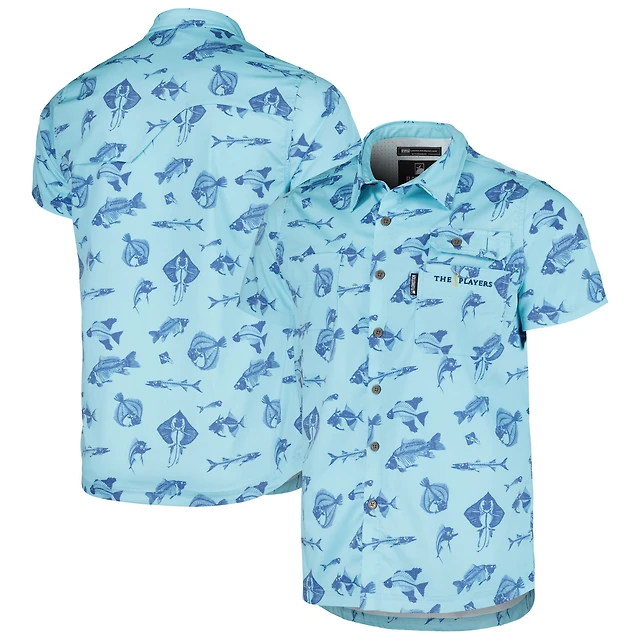Chemise boutonnée tri-mélange de pêche THE PLAYERS Flomotion pour hommes, bleue