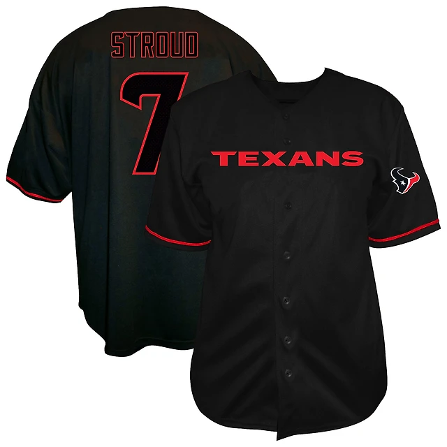 Chemise de baseball boutonnée noire C.J. Stroud pour homme, motif Houston Texans, grande taille