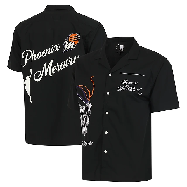 Chemise de bowling unisexe round21 noire Phoenix Mercury Lucky Strike à boutons complets