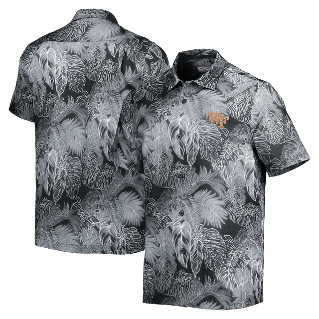 Chemise de camp boutonnée Tommy Bahama Black Wake Forest Demon Deacons Coast luminescent Fronds IslandZone pour hommes