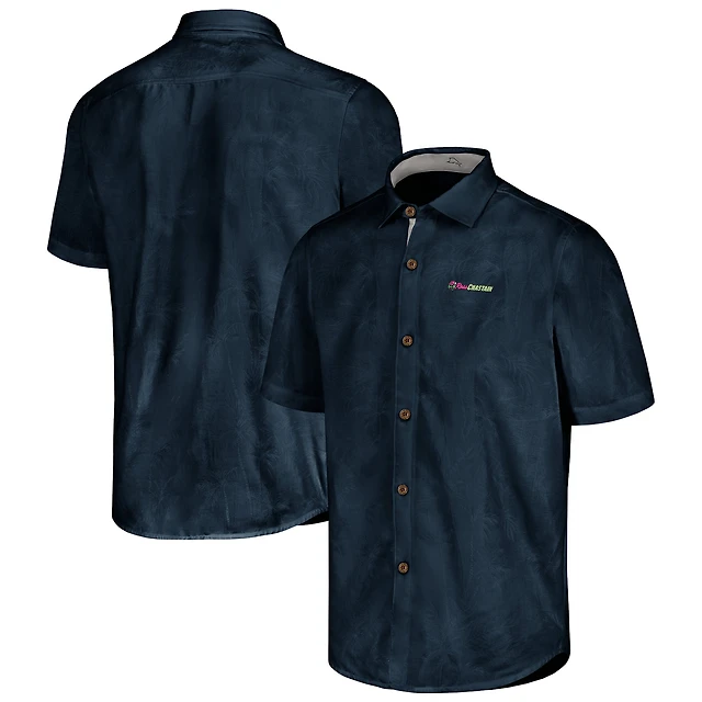 Chemise de camp boutonnée Tommy Bahama Navy Ross Chastain Sport Coconut Point Palm Vista IslandZone pour hommes