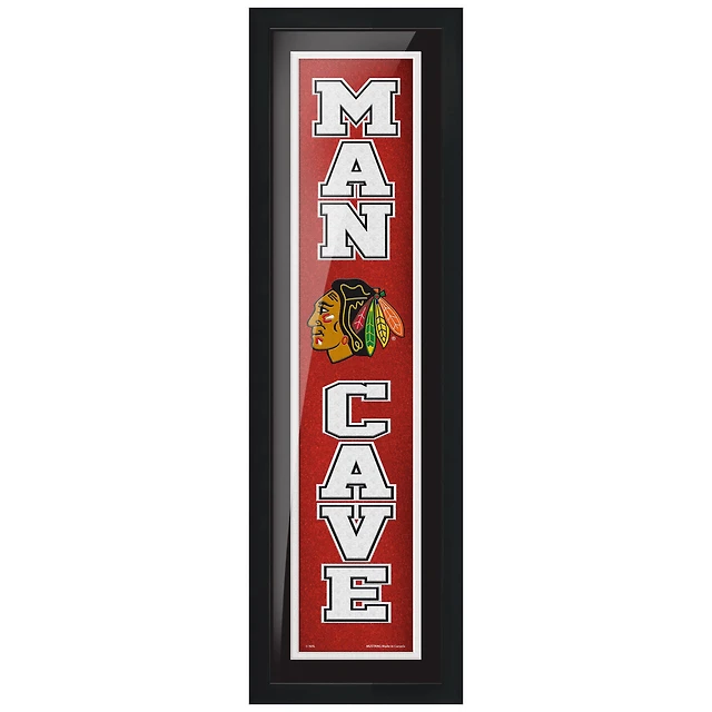 Chicago Blackhawks - Enseigne encadrée Man Cave de 6 po x 22 po