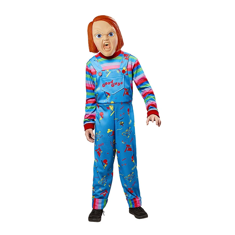 You might think he’s the best buddy to have but wearing this Kid's Chucky Costume shows he is far from it. Chucky is a possessed killer doll from the Child’s Play series of films which started back in 1988. This outfit comes as a single piece jumpsuit made to look like decorated overalls and a striped shirt. A mask is included which features Chucky’ s menacing face. Officially licensed Chucky costume.
